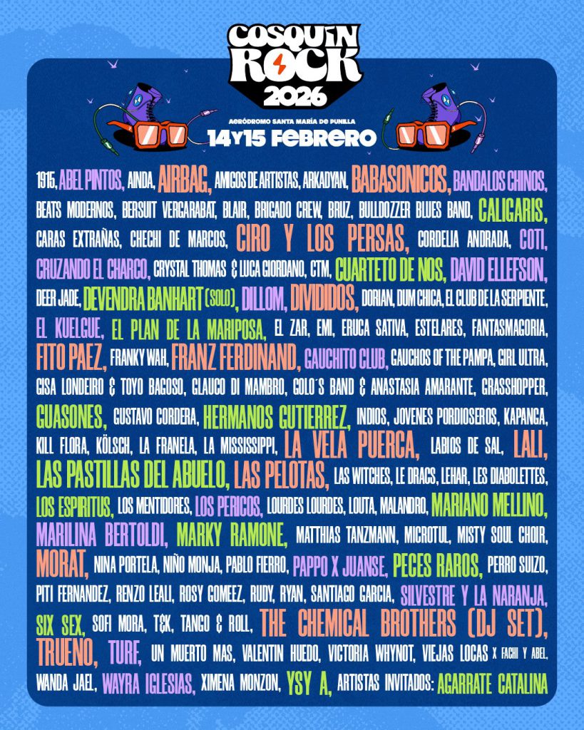 A ellos se suman nombres que atraviesan generaciones y estilos: Dillom con su propuesta disruptiva y desafiante, el rock crudo e irresistible de Cruzando el Charco y los sonidos siempre movilizantes y eclécticos de Turf. La alegría asegurada estará a cargo de Los Caligaris y el regreso de Viejas Locas para encender la nostalgia de miles de fans en un reencuentro memorable.