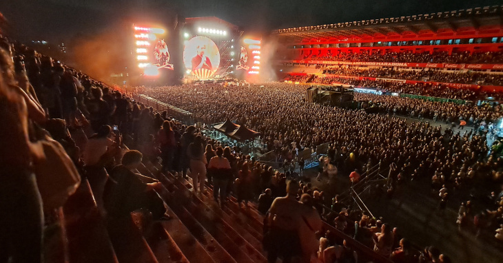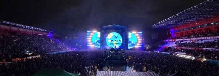 En vez de empañar la fiesta, la lluvia que dijo presente por momentos no hizo más que darle un mayor tono épico al espectáculo que se vivió sobre el escenario, en puesta en escena, sonido y visuales, sino además en la respuesta de las más de 25 mil personas que acompañaron la noche.