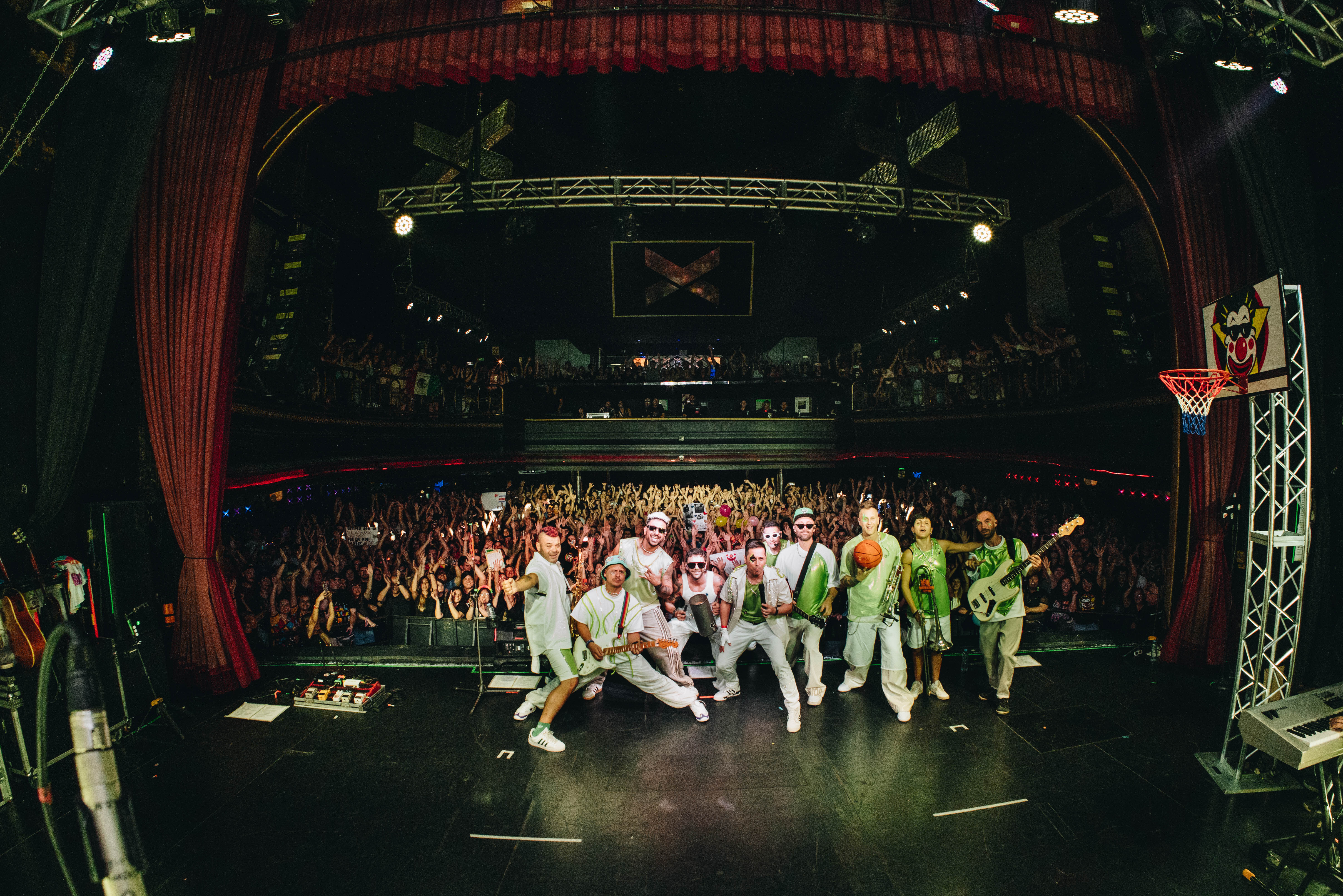 | El grupo cordobés volvió a demostrar por qué es sinónimo de alegría y fiesta: desplegaron todo su carisma, combinando música y una puesta en escena circense. Con esta nueva propuesta, Los Caligaris trascienden el formato de show tradicional, llevando su energía a otro nivel a través de un montaje renovado, lleno de dinamismo, interacción y momentos que sorprendieron al público de principio a fin. No faltó nada de la escenografía que ya forma parte del ADN de la banda: la simulación del asado, el arco de fútbol con su infaltable pelota y, como novedad, la incorporación de un aro de básquet, donde en plena función los músicos se animaron a tirar. Estos elementos, sumados a su característico espíritu lúdico, reforzaron la idea de que en un show de Los Caligaris todo puede pasar. |