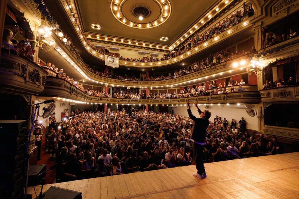 También hubo tiempo para el recuerdo de La máquina de hacer pájaros y su experiencia de ver a Charly García en la fila 7 de ese mismo teatro, a los 13 años, cuando le cambió la cabeza y decidió ser músico.